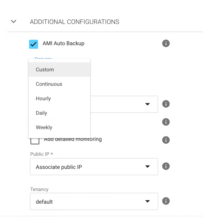 The AMI Auto-Backup provides several options for the frequency in which the backup images are collected: