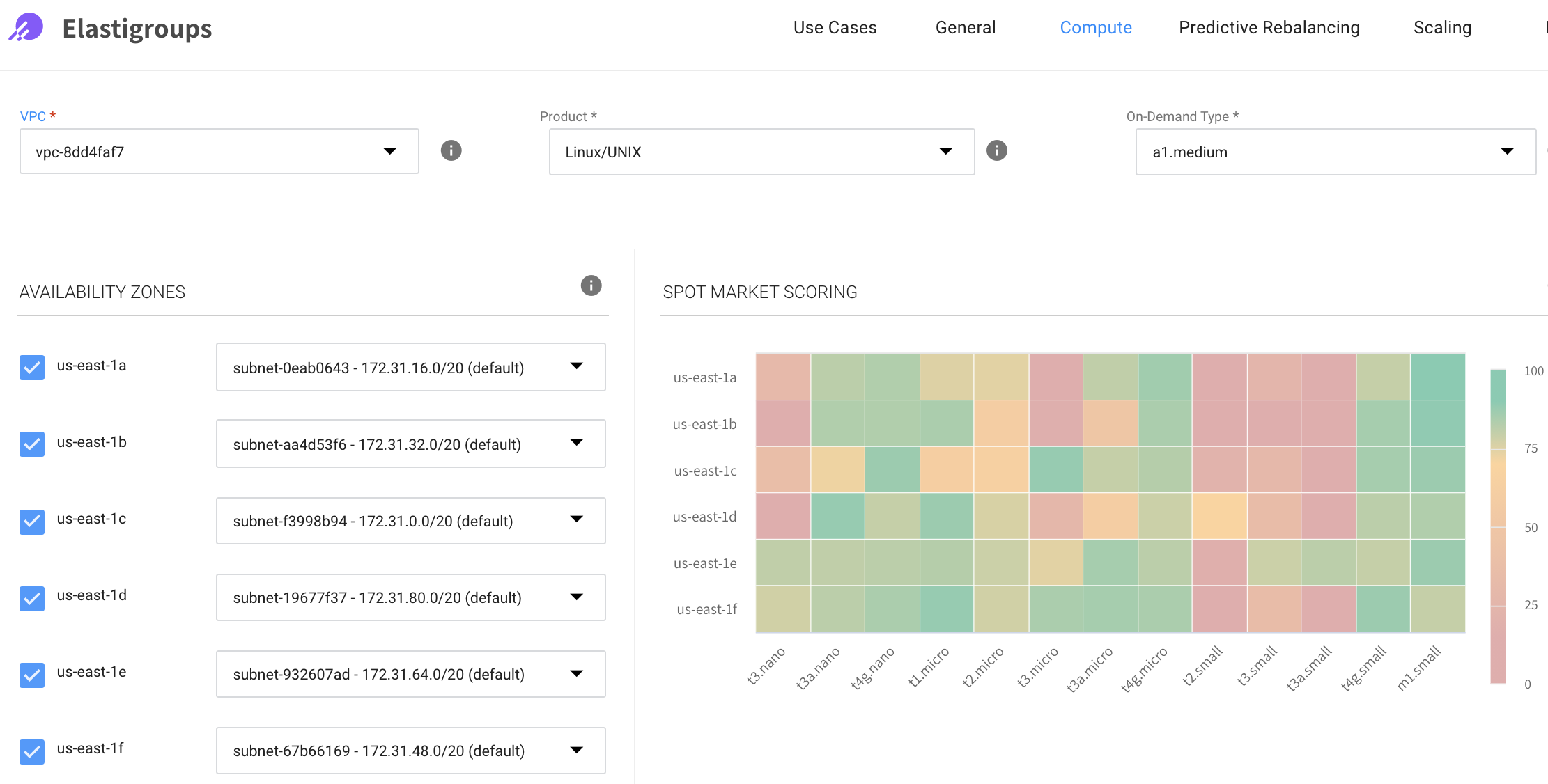 To diversify the spot markets available to the Elastigroup, it is highly recommended to choose all the availability zones listed for the region.