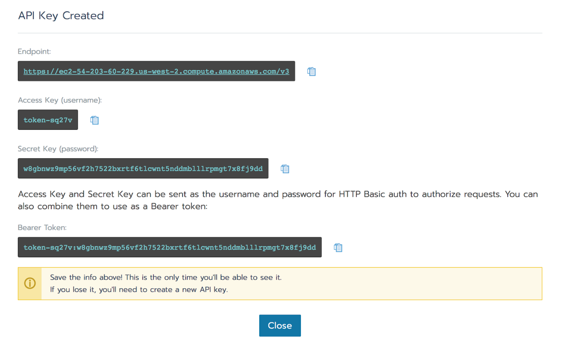 2. Save the access and secret keys for use in the Elastigroup configuration.